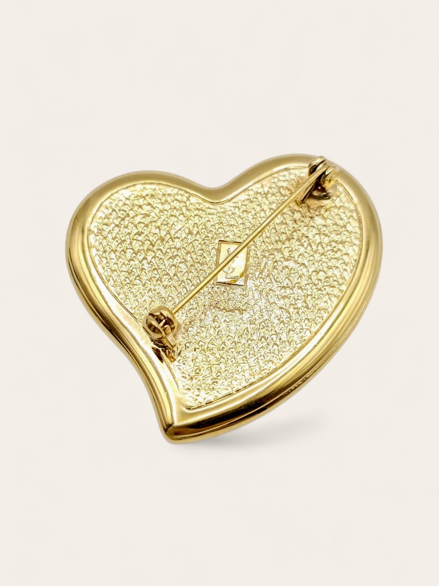- Vintage YSL Yves Saint Laurent silver heart brooch - Features a silver tone metal in a heart shape splitting into two different sides; one side is embellished with rhinestones -...