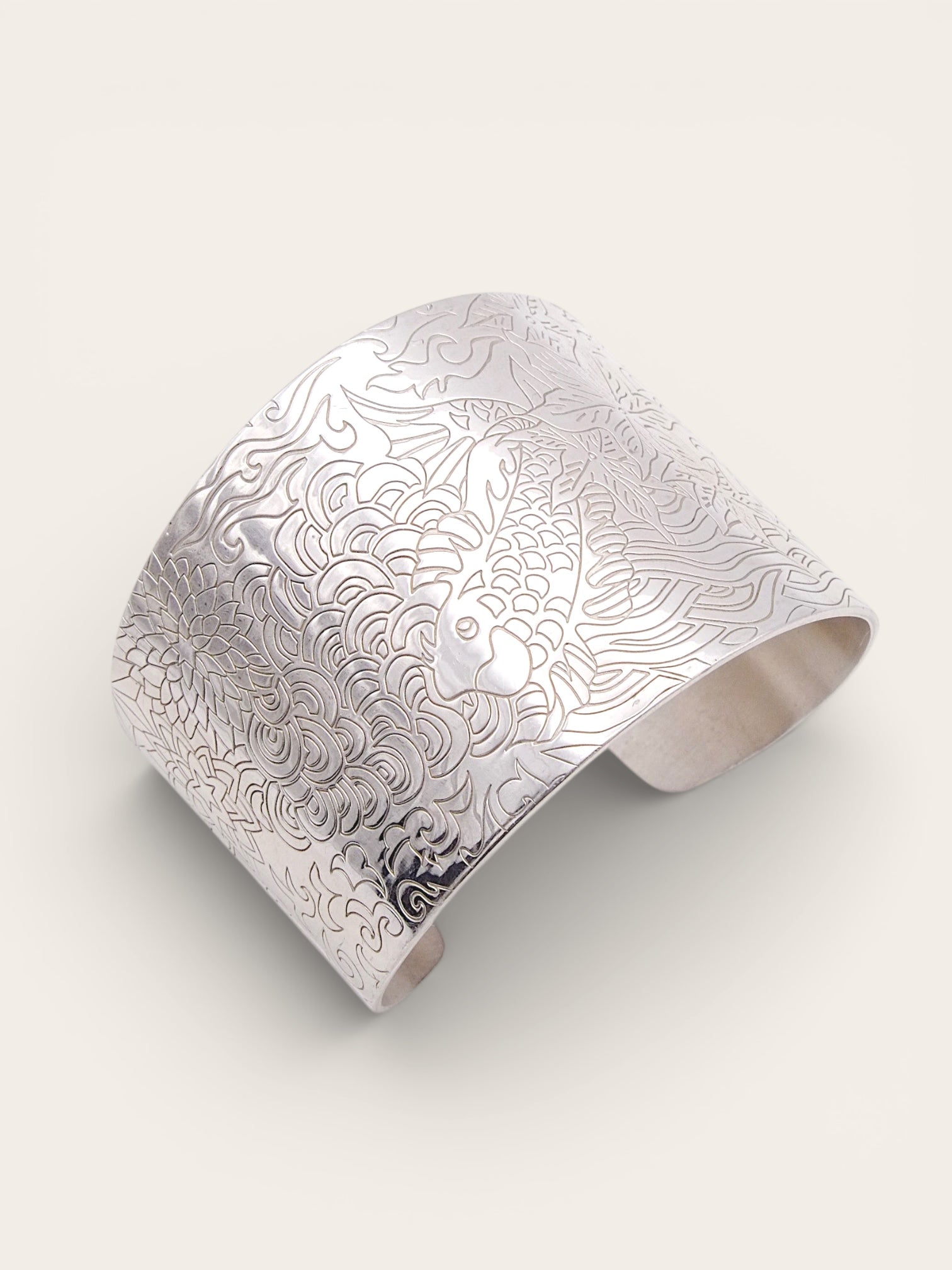- A statement and symbolic cuff bangle from Kenzo, handcrafted of 925 sterling silver with premium craftsmanship - Inspired by the traditional Japanese garden scenes, it is from the Kenzo koi jewellery...