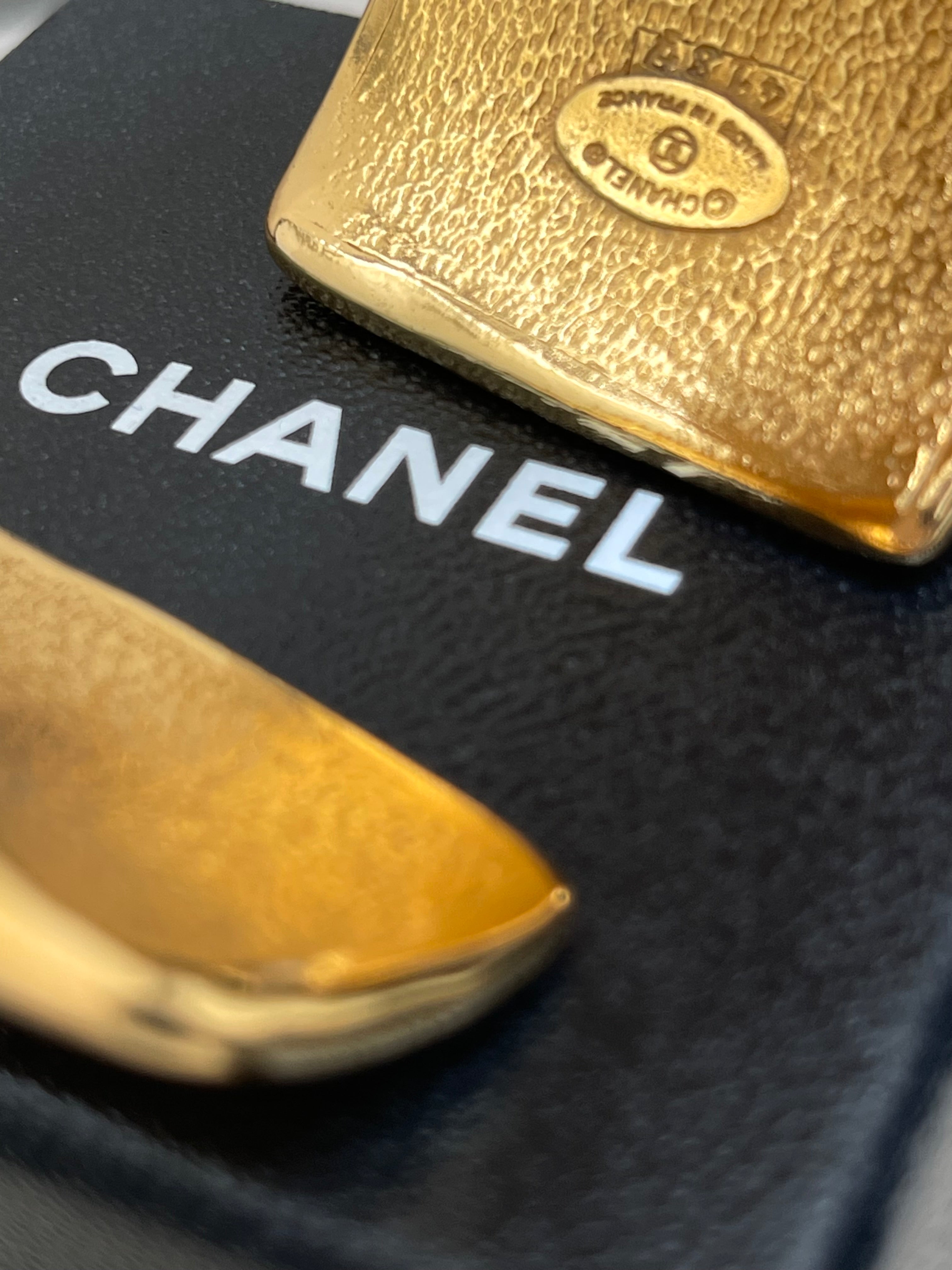 CHANEL Wide CC Logo Chain Cuff Bangle (Vintage) A timeless statement from the maison’s golden era—this wide gold-plated cuff is intricately textured with a braided chain pattern and subtle CC...