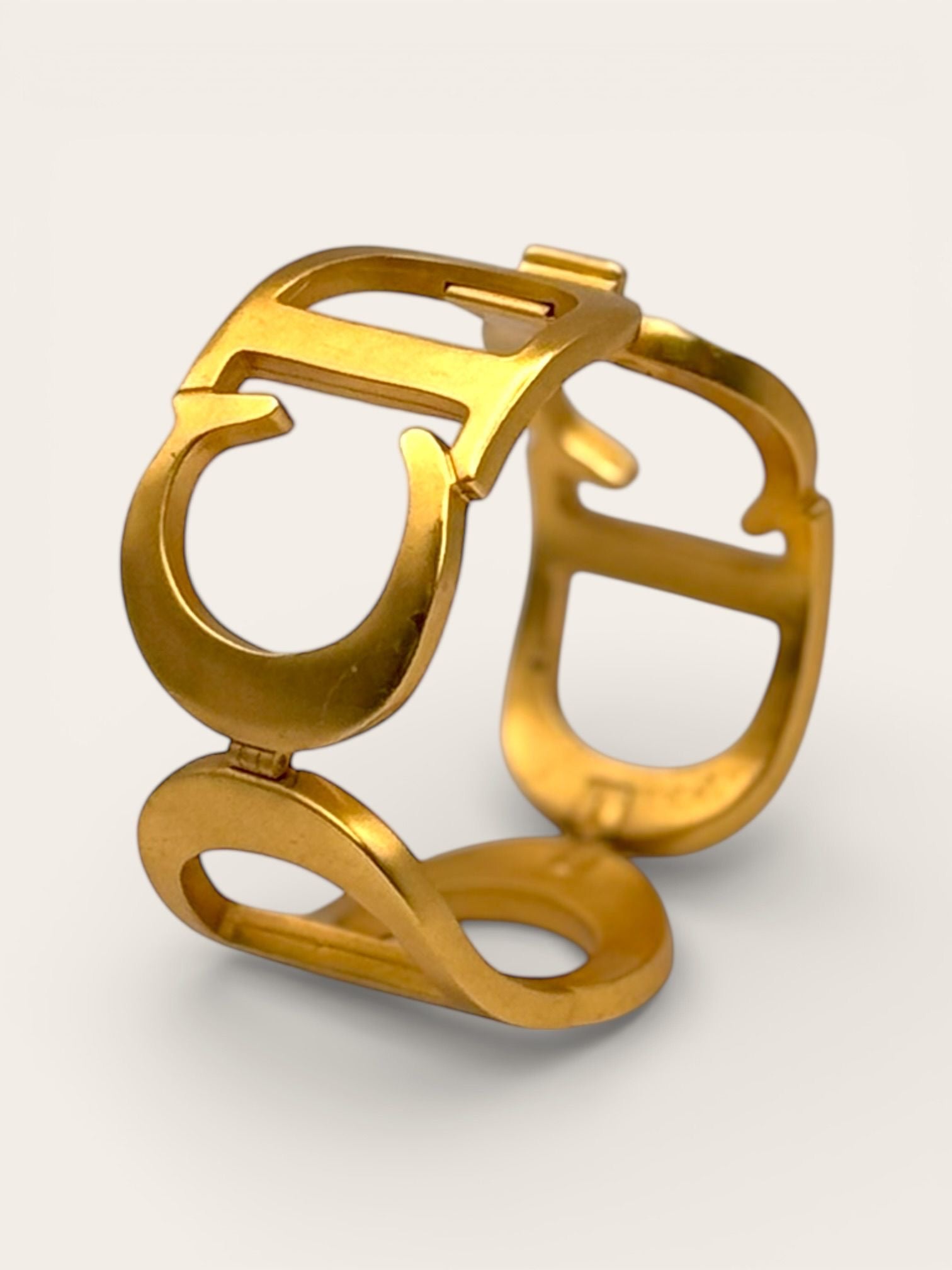Vintage Christian Dior gold-tone infinity CD bangle, Circa 1980s A bold expression of Dior’s unmistakable logo language, this sculptural CD bangle captures the glamour and confidence of late 20th-century power dressing....